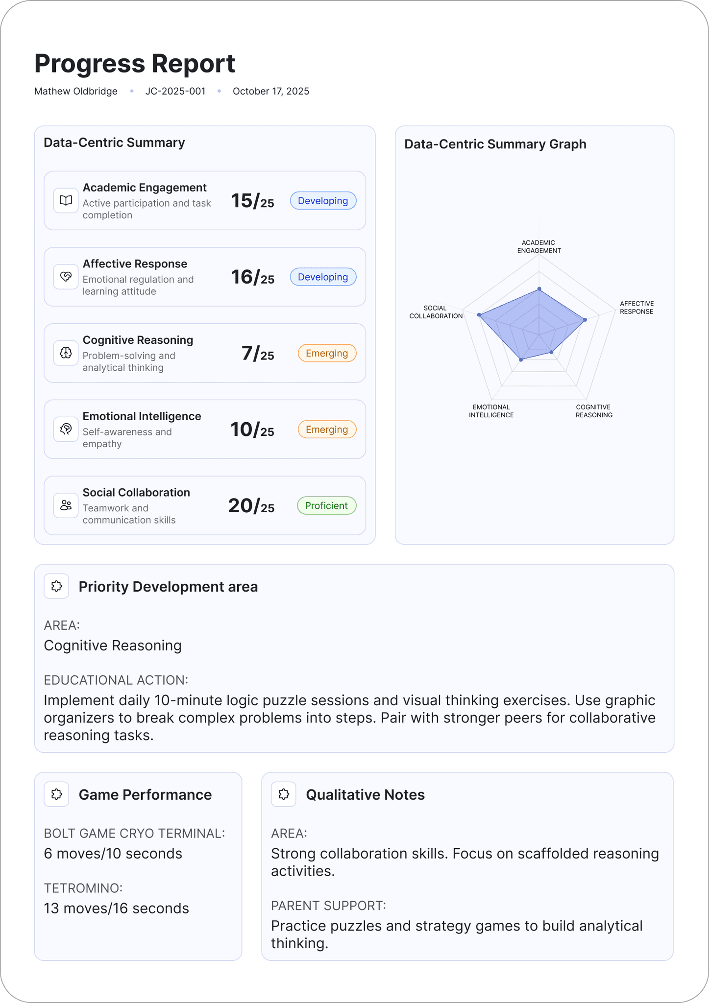 Introspection academy is a Evidence-based assessment of cognitive profile that helps to pick right pathway. All of this in a game environment enriched with a story.